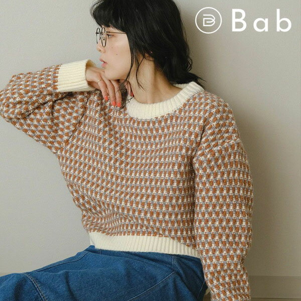 目立ちすぎることなくレトロ感を楽しめる編みこみのパターンのニットはいかがでしょう。襟ぐり・袖口・裾の色が全体を引き締めて統一感をもたらしてくれているので、とても合わせやすいと思います。カラバリは2通りあります。