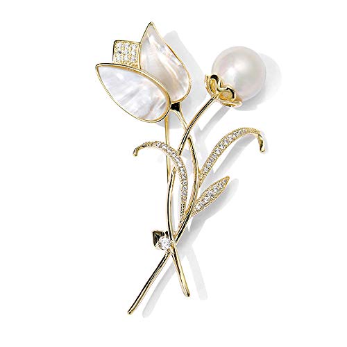 シンプル、品の良さを感じるチューリップラインのブローチです。真珠の煌めきが素敵です。