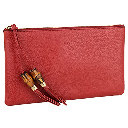 赤のGUCCIクラッチバッグ。大きさ縦15.5㎝横25.5㎝。シンプルですがGUCCIの特徴的なバンブーを用いたデザインになってます。旅行先などで、スーツケースにポーチがわりに入れて置けば、観光などの際にはクラッチバッグとして使える便利な大きさです。小さめなので存在感と可愛さを強調するため赤色を選びました。