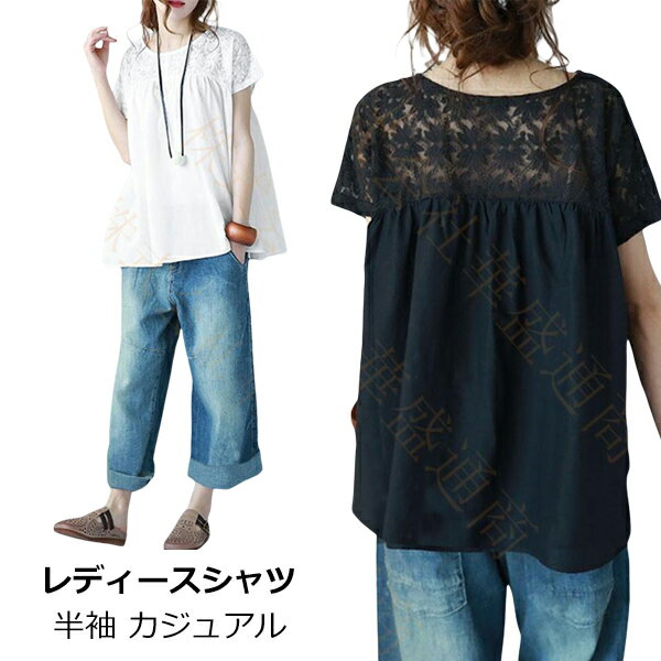 こちらの花柄レースの切り替えデザインがおしゃれなレディース半袖シャツは、通気性も良いので蒸れずに快適に着られます。綿混素材ですので肌触りも良いです。上品な白色か黒色から選べましてコーデもしやすいので重宝しそうです。