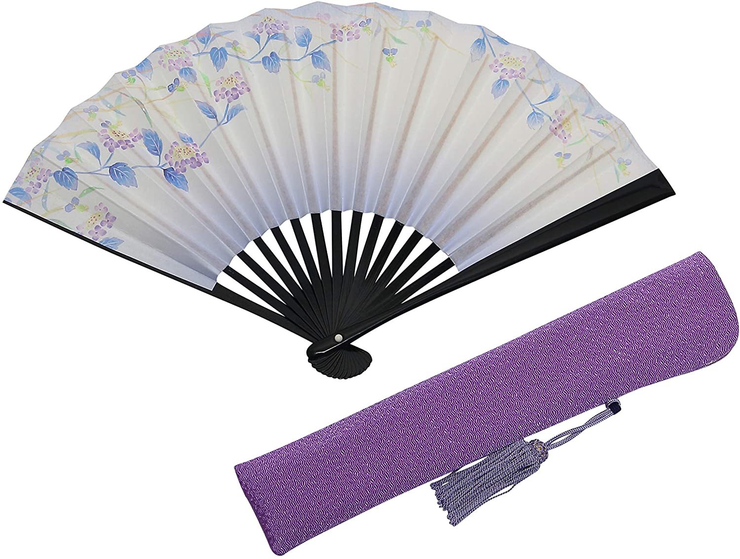 とてもおしゃれなこちらの京扇子はいかがでしょう?紫陽花が描かれたとても上品な絵柄が素敵な扇子です。淡い紫色が大人の女性にぴったりだと思います。おすすめです!