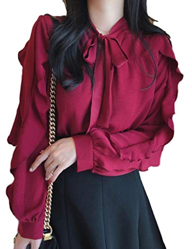 - [サフィーブラウ] A62 XXL レッド レディース レディー ブラウス シャツ プルオーバー トップス 長袖 フリル ふんわり 袖 ボリュームスリーブ ボリューム袖 ハイネック 立ち襟 リボン ボウタイ ふりふり フリフリ おしゃれ 可愛い ロマンティック フォーマル パーティー ガール 女の子 女子 ママ 母 母親 ゆったり ビッグ 大きめ 大きな 大きい サイズ 秋物 冬物 あか 2xl