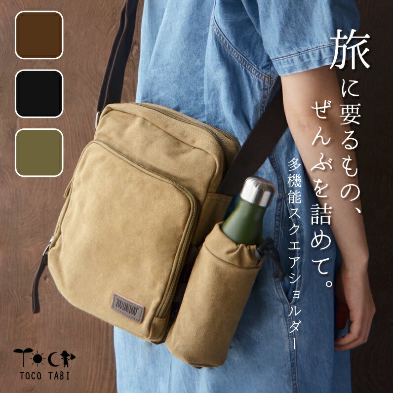 普段使いには、とりまわしのいい帆布バッグが最適。ショルダーなら、ひったくられにくいし、自転車に乗る時も便利。