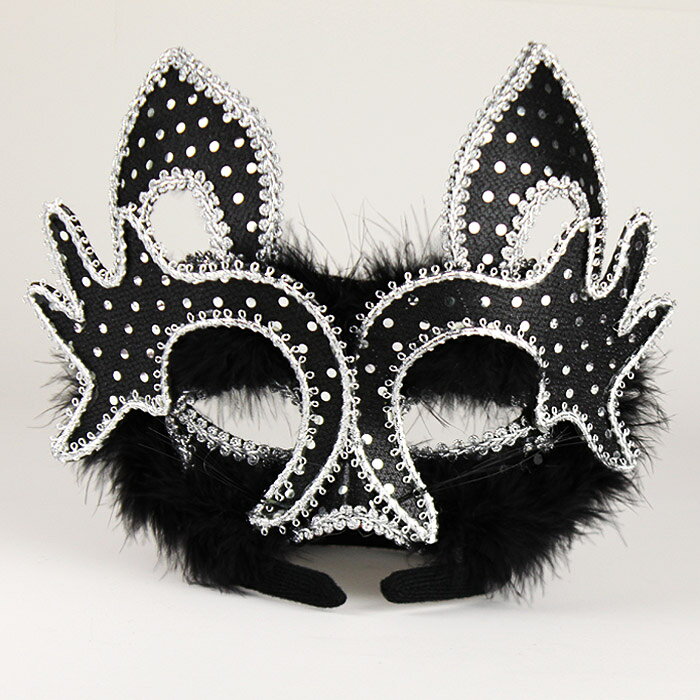 黒猫モチーフのマスクはどうでしょう。ふわふわのファーと猫耳のモチーフがかわいいですが、ちょっとセクシーさもあります。
