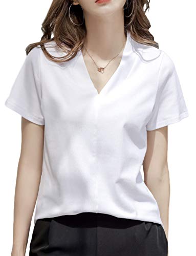 ![[ビーエヌワン セレクト] ゆったり 上品 カットソー Vネック Tシャツ 半袖 レディース ベーシック トップス シャツ インナー シンプル 無地 春 夏 秋 春夏 服 カジュアル きれいめ ビジネス 女性 大人 ルームウェア ファッション 大きいサイズ 部屋着 韓国 フェミニン コンサバ かわいい おしゃれ オフィス スーツ 通勤 ol 20代 30代 白 ホワイト BN59 WHT M](https://m.media-amazon.com/images/I/41bnsF1HlcL.jpg)