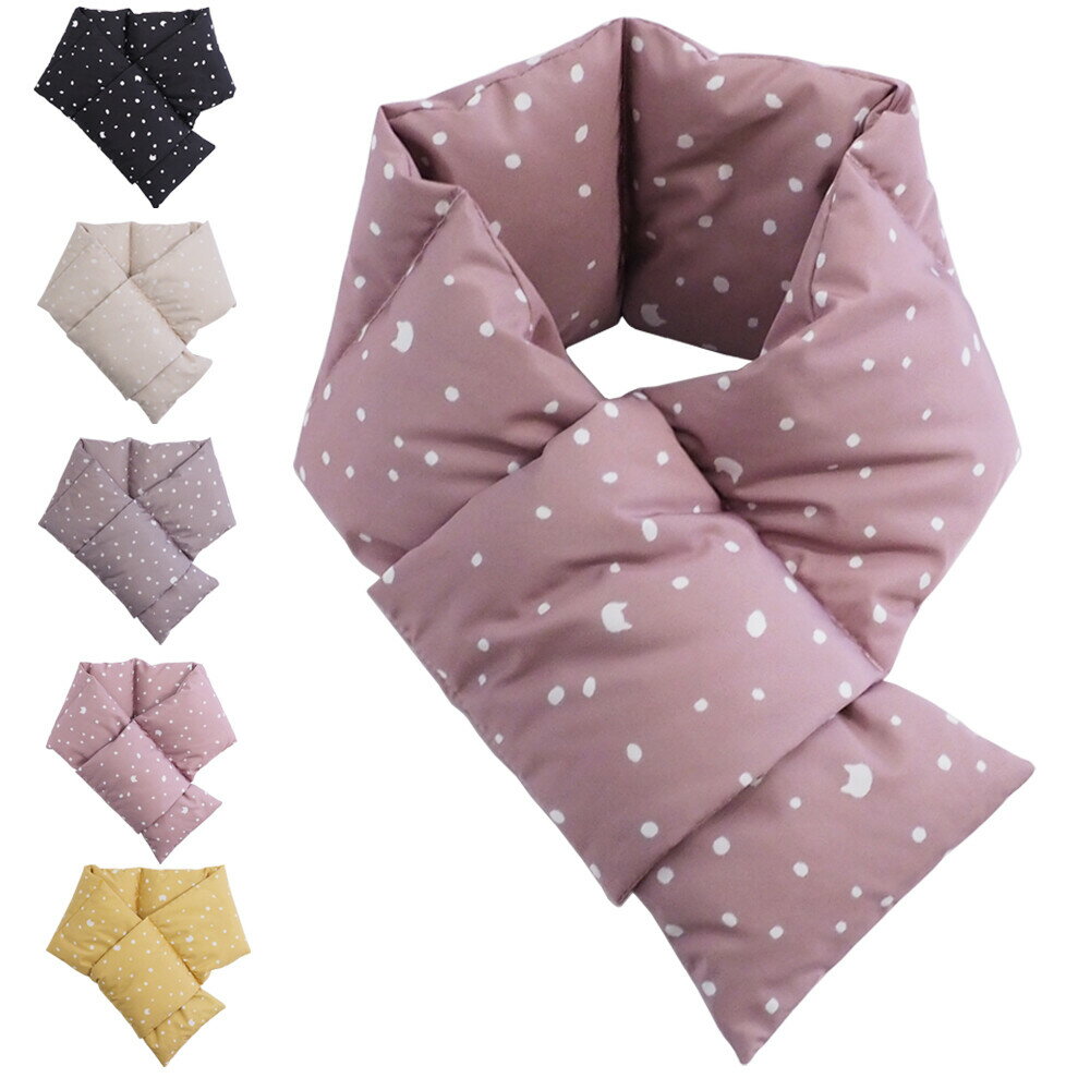 こちらのマフラーはいかがでしょうか。中綿はダウンなのでふわふわでとても暖かく軽量ですし今の時期にぴったりです。使わない時は折り畳んでコンパクトに収納できるのも便利だと思いますよ。