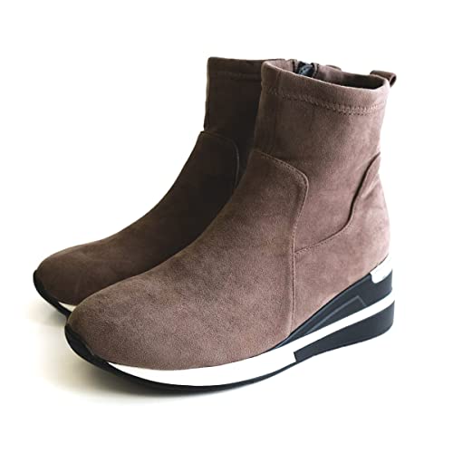 ウェッジソールタイプの厚底ブーツです。防寒性とストレッチ性に優れた素材が使われています。