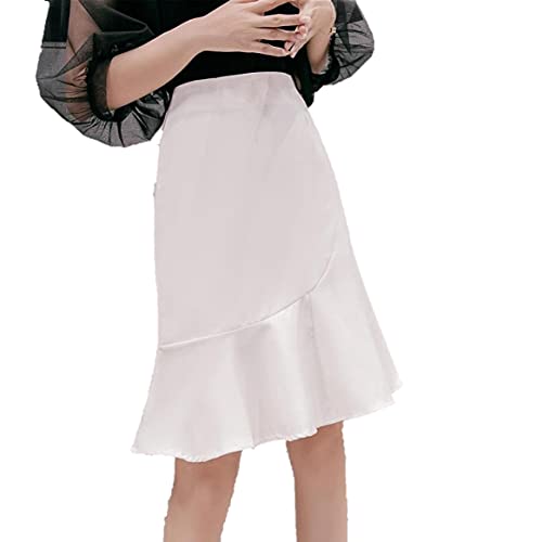フリルマーメイドスカートのこちらはショート丈で低身長さんも素敵に履きこなせます。裏地も付いていて白が上品な感じです。