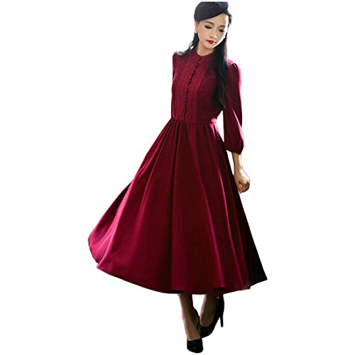 こちらのワンピース、大正ロマン風の、お嬢様ワンピースで、ヴィンテージ風、マキシ丈な赤が素敵です。