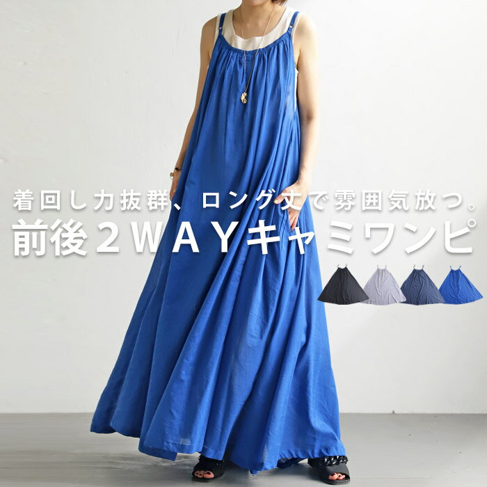 カラーバリエーションが4色ラインナップされたキャミワンピースです。前後で使える2WAYでギャザーも大人可愛く透け感もいい感じだと思います。