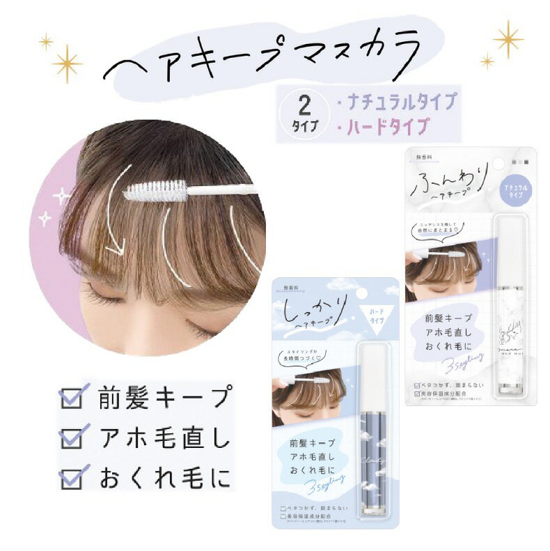 前髪のセットにおすすめのヘアキープマスカラです。アホ毛もしっかりとケアしてくれるのできれいなヘアスタイルに仕上がります。