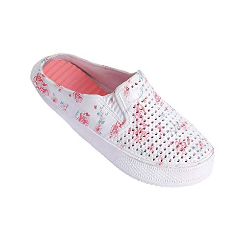 こちらのナースサンダルは花柄でおしゃれですね。甲の部分もパンチングで蒸れ防止してくれるの良いです。指が出ているサンダルはキャスターなどに足をぶつけてケガする心配があるのでこちらの方が安全ですね
