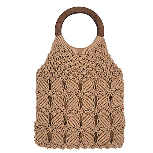 柔らかい素材のマクラメバックはともするとだらしなく見えがちですが取っ手を硬い素材にするだけできちんとして見えます