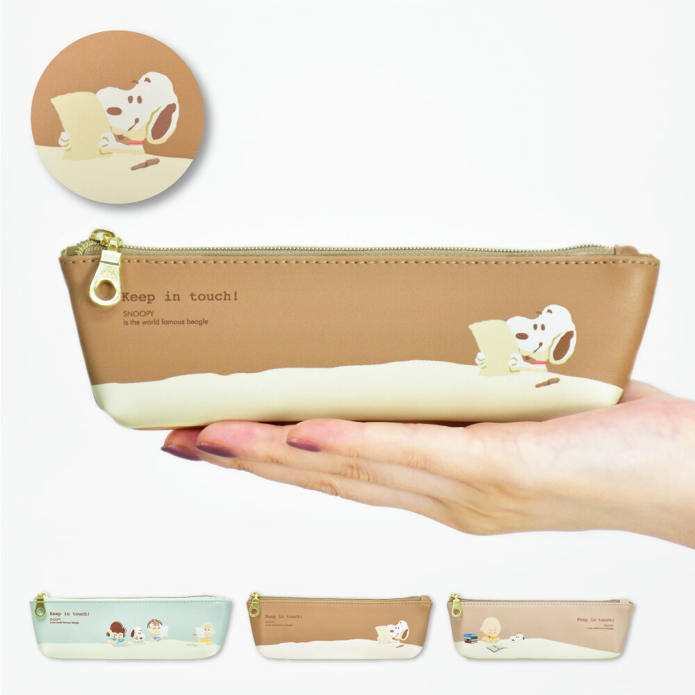 こちらの、レザー製のペンケースは如何でしょうか?ナチュラルカラーでSNOOPYがのっていて、めちゃくちゃおしゃれで可愛いデザインです。出し入れも楽ですよ。