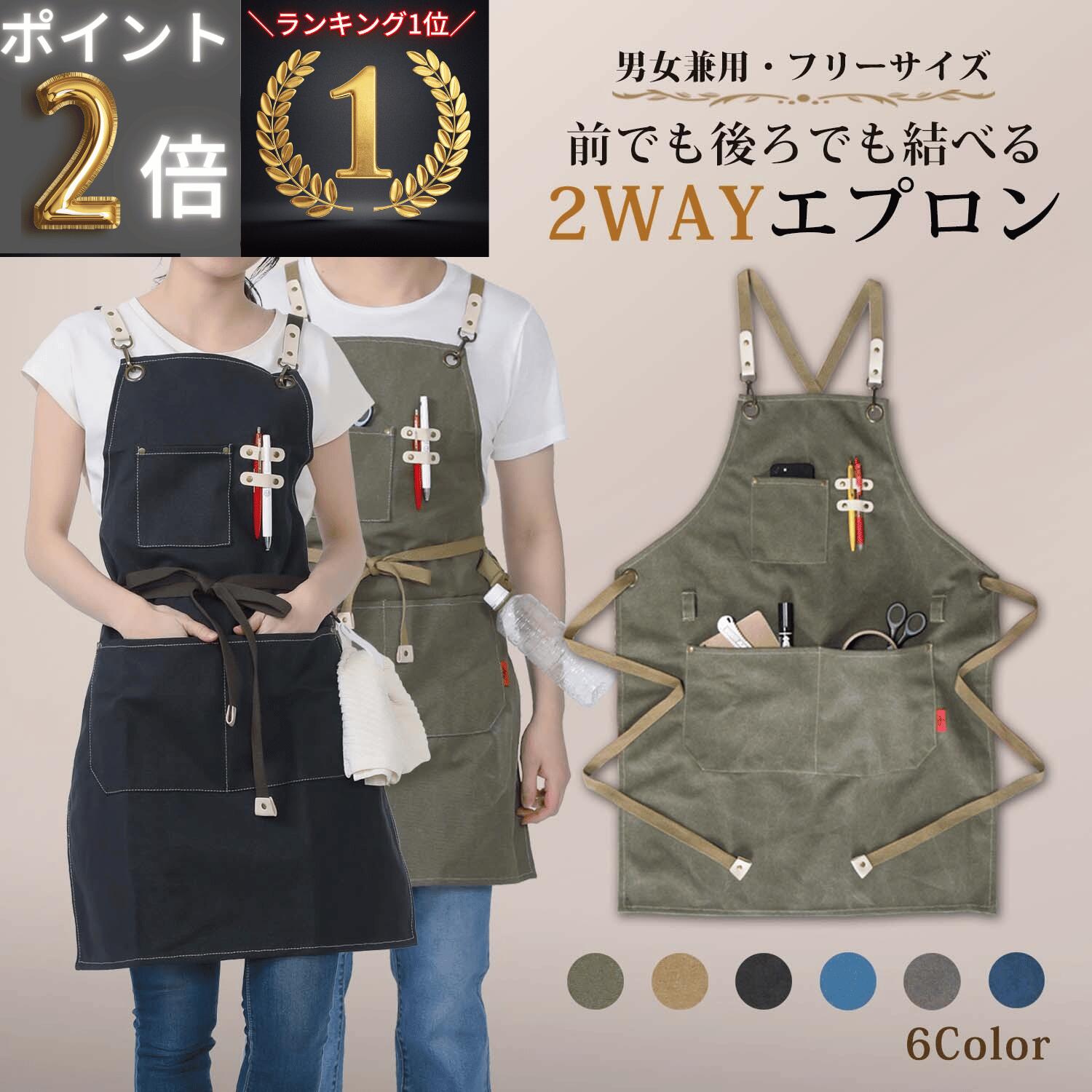 肩紐が落ちにくいエプロンです。キャンパス生地で丈夫でおしゃれな大きなポケット付き、前でも後ろでも結べる結べるエプロンでガーデニングにピッタリですね。
