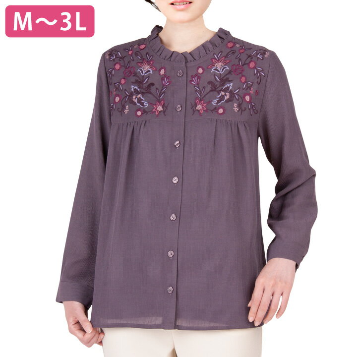 細やかなちりめん素材が繊細な印象のこちらはいかがでしょうか?首元のフリルや胸元の刺繍がとっても華やか!いくつになっても可愛いお洋服を身につけるのは胸が踊ると思います。少し若々しいデザインだけど、80代のおばあ様にも似合うような優しい印象のものを選びました。