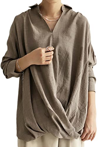 ブラウンのゆるっとしたデザインが、シックで素敵です。ポリエステル95% 、ポリウレタン5% の生地で柔らかくて着心地がいいです。