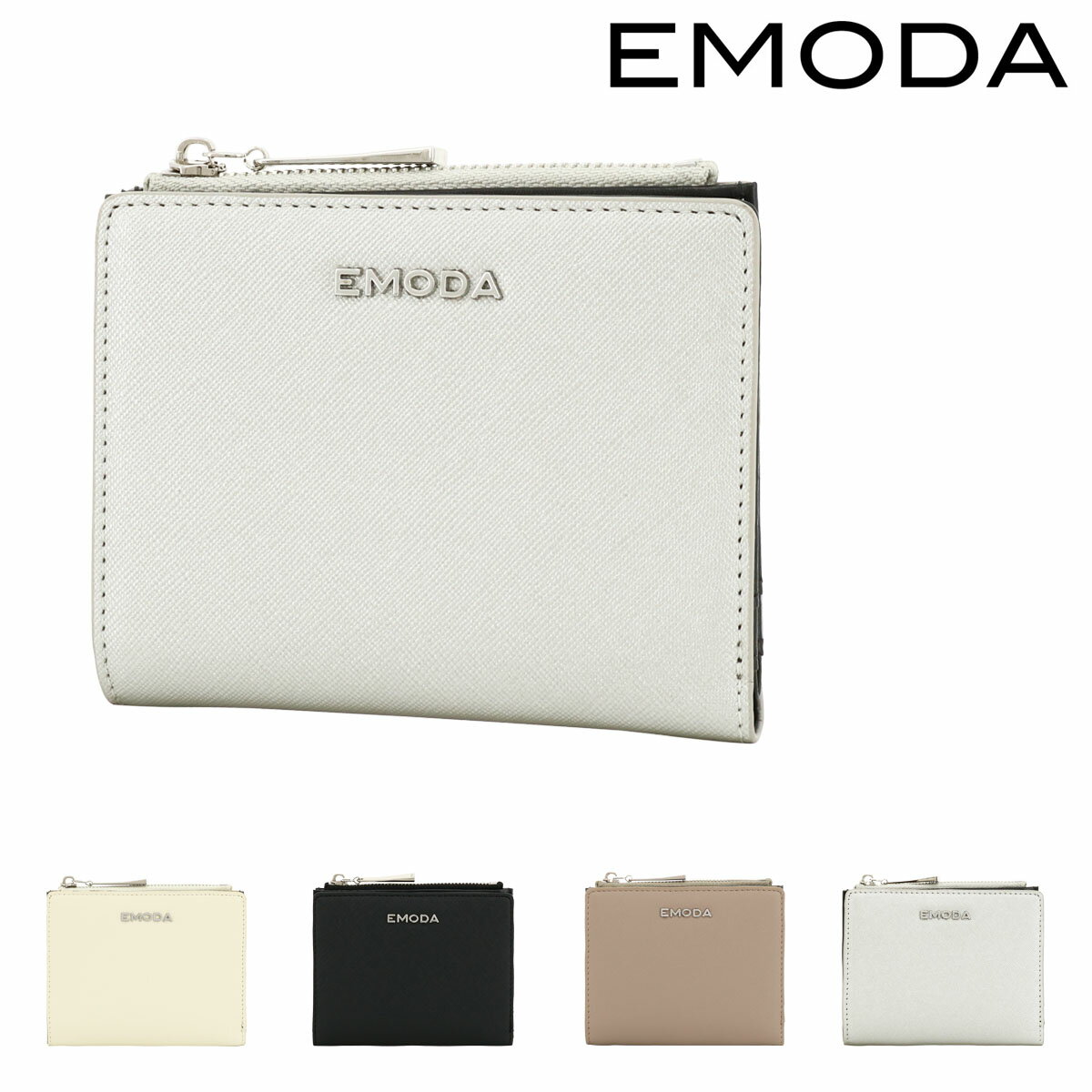 エモダの二つ折り財布、、レザーサフィアーノ調がおしゃれです。型押しで4種類展開。ベーシックな色が上品でスリム、薄型で使いやすいです。