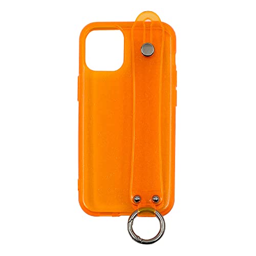 キラキラのラメのグリッターの入っているオレンジ色のデザインが可愛いです。ベルトストラップが付いているので、落下防止になって安心です。
