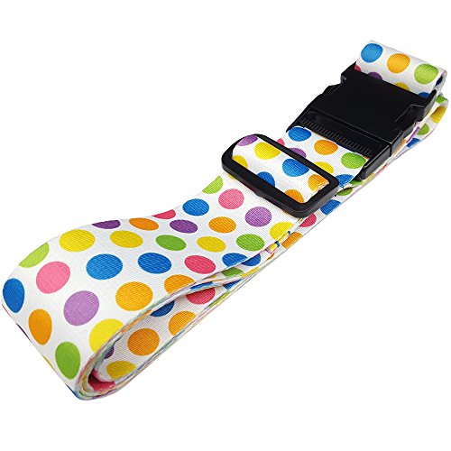 カラフルなドット柄のスーツケースベルトです。可愛さもありつつ目立ちやすい機能性が重視されたデザインですね。さらにビビッドな黒地の色違いもありますよ。