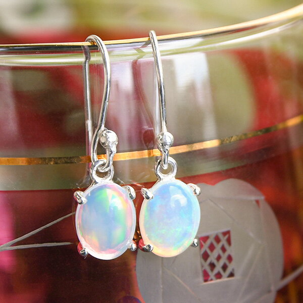オパールは元々光の当たり具合で色々な表情を見せてくれる石ですが、こちらのオパールは虹色に輝くそうです。天然石だけにネットでの注文はどんな石が送られてくるのか心配ですが、こちらのお店は現物の写真を載せ、選んで注文するシステムなので、安心感がありますよ。デザインもご希望通りのレトロな感じのスイング型で、色が色だけに水滴のようでとても綺麗だと思います。