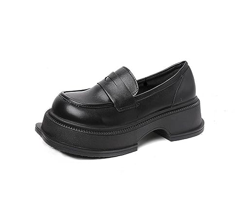 通学、通勤に使用でき、足長効果が期待できる厚底のローファーです。オーソドックスなデザインのコインローファーで、コーディネイトしやすくロリータコーデにも使用できます。靴底全体が厚底になっているためつま先と踵の高さに差がなく安定して歩きやすくなっており、厚底ソールが足の負担を軽減して長時間歩いても疲れにくくなっています。