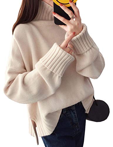 此方のハイネックセーターは、アクリル80%とポリウレタン20%の混紡素材なのでチクチクの心配はないでしょう。流行のデザインなのもあり、サイドのスリットバックは長めに作られています。首元をすっきりと全体的なシルエットもスマートに見えオススメの一品です。お色はクリームとカーキの2色
