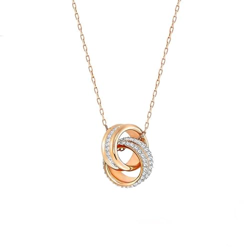 ビジューのついているダブルリングのデザインで、おしゃれです。 K18 のピンクゴールドのネックレスで、品質が良くて長く使うことができます。
