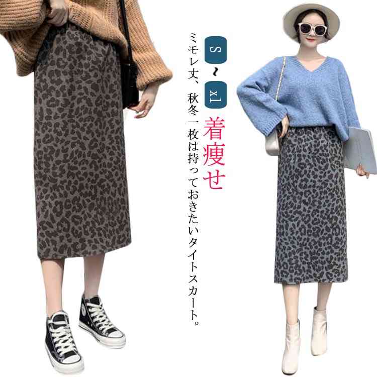 ダークカラーでコントラストが抑えられた レオパード柄なので大人っぽく見えますし ミモレなので 落ち着いて見えます