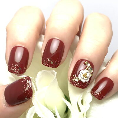 ワインレッドの色味もおしゃれなものになっていて使いやすいかと思いますし、つけ爪でおしゃれに見えるかと思います。