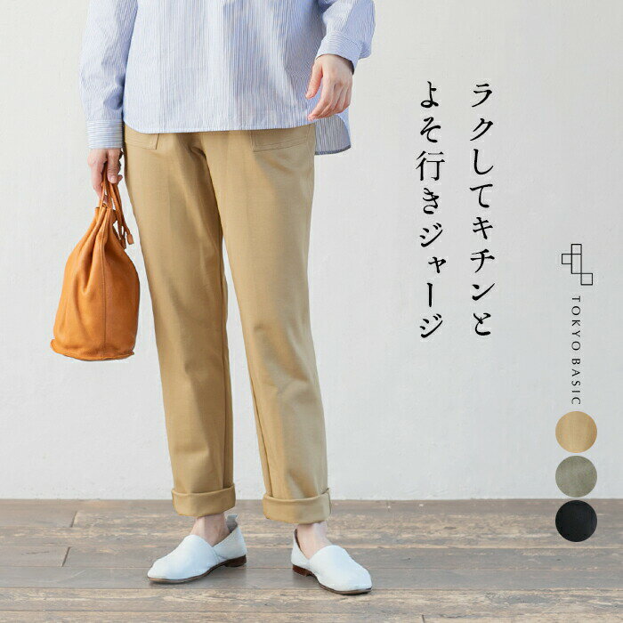 ロールアップさせてもお洒落にまとめられて、ストレッチが効いて動きやすくてお勧めしたい、ベイカージャージパンツです。ゆったり目なシルエットで屈んでも肌着のラインが見えにくそうなのが助かります。きちんとして見えるので、お出掛けにも良いですね。