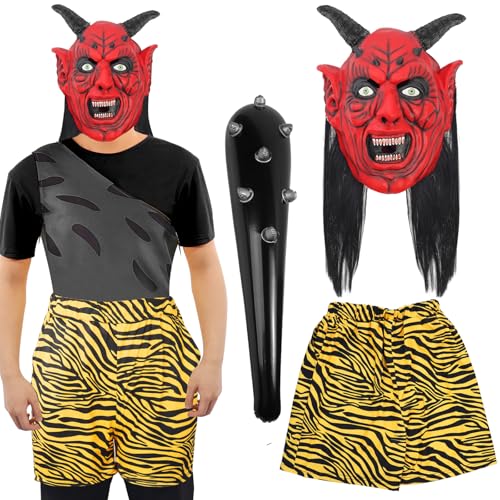 うんと怖がらせたいなら、こちらの恐ろしい鬼のお面が付いたセットはいかがですか。棍棒にトラ柄のパンツが付いています。