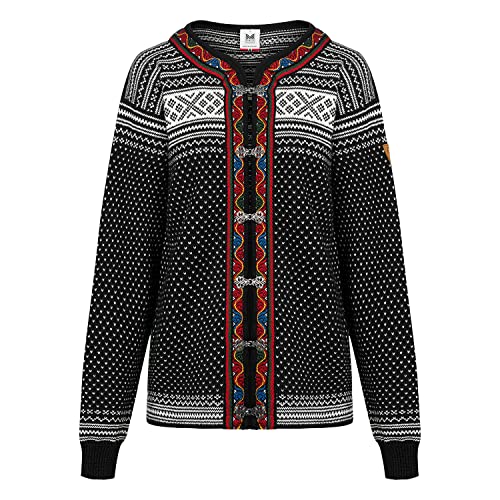 1879年から営業しているノルウェーで歴史あるウール衣料のブランド、Dale of Norwayのウール100%のメンズカーディガンはいかがでしょうか?編み込んである模様はセテスダールパターンという十字架と小さなV字のパターン柄です。カラフルな刺繍のバンドが襟から前開きの淵どりにありノルウェー製のピュータークラスプがついていて特徴的なデザインです。保温性もあり秋冬にあったか!丈夫で長持ちします。