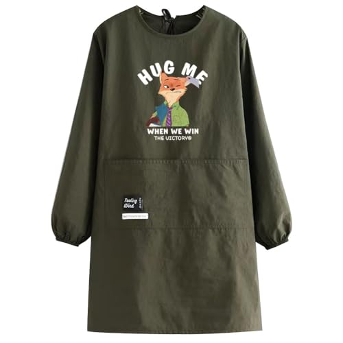 着脱しやすくゆったり着れる割烹着です。前ポケットが2つ付きで作業に便利ですね。防水仕様だから汚れも付きにくくお手入れも楽でいいと思います。