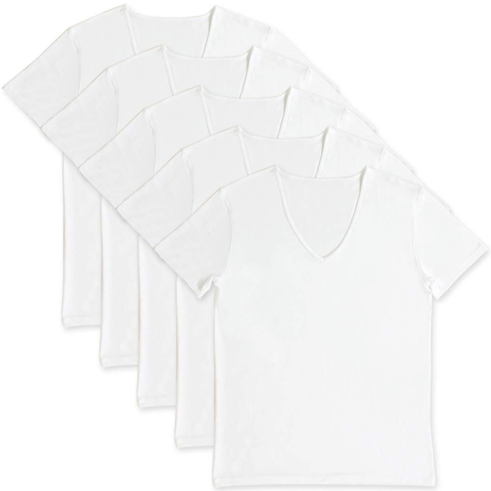 肌触りの良い生地のようで、汗をかく夏にも快適みたいです!Vネックが深めで、生地も薄いのでアウターに響かず夏にもおしゃれを楽しめますよ。