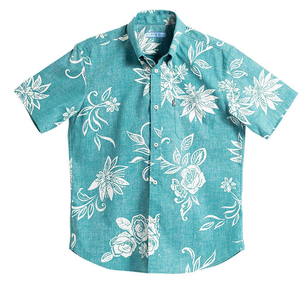 優しいブルーの色合いが結婚式にぴったりなアロハシャツです。派手過ぎない柄なので抵抗なく着れますし、爽やかなコーディネートができますよ。