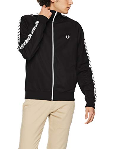 フレッドペリーのトラックジャケットはいかがでしょうか。定番の黒に白のシンボルアイコンが映えてカッコいいと思います。ハイネックにも出来るので雨の日など肌寒い時にはかなり重宝できますね!