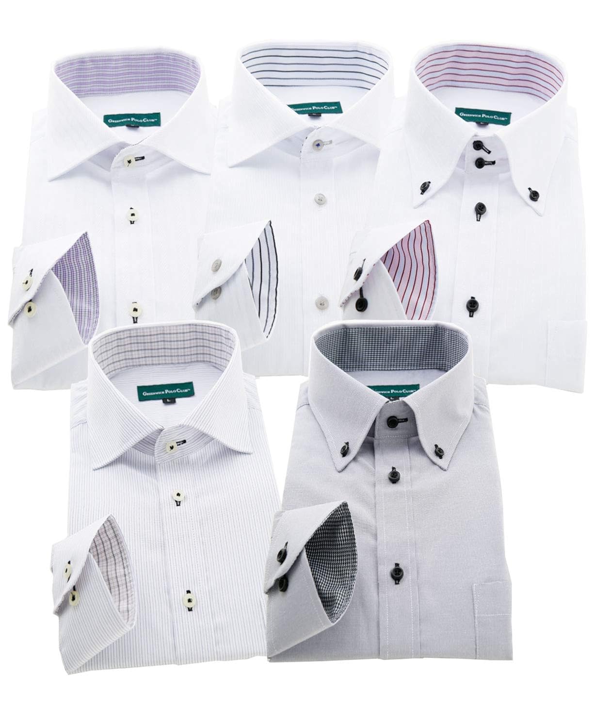 防しわ加工されたこちらのシャツをお勧めします。5枚セットになっているので、汗をかいても洗い替えがたくさんあって余裕の毎日です。1枚1500円程度と大変お値打ちなシャツです。