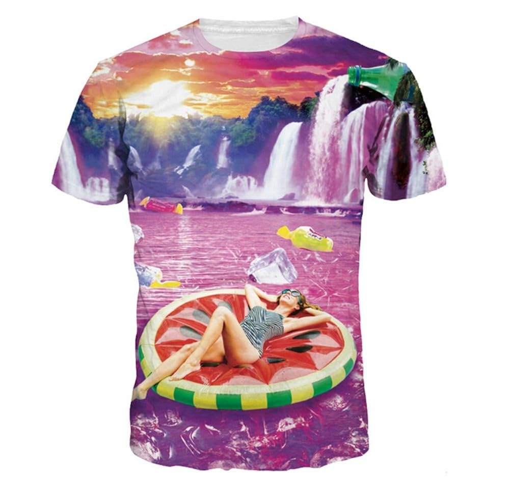 ヒップホップ系の3DプリントTシャツが夏の着回しに大活躍します。男性にも着やすいおしゃれなデザインなので、ペアルックにお勧めです。