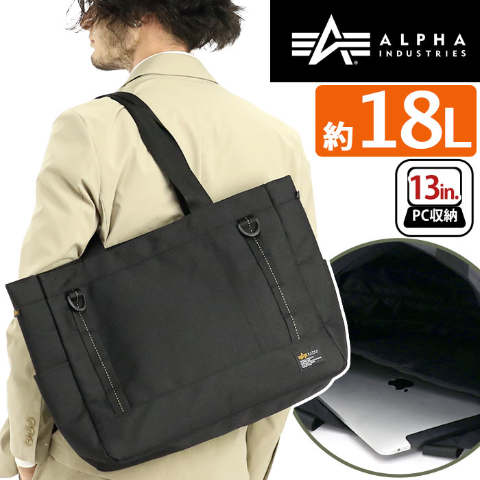 ミリタリーウェアで人気のブランド、アルファインダストリーズのトートバッグは丈夫なCORDURA素材を使い、丁寧な作りになっているためパソコンを入れて持ち運ぶのにも最適です。外側にも内側にも収納ポケットがあり、仕分けしやすく使いやすい作りになっています。シンプルでどんな服装にもあわせやすいデザインです。取っ手の紐部分が持ちやすい長さなのも使いやすいです。