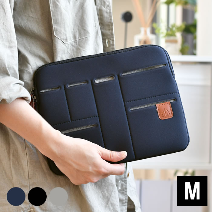 男女問わず使いやすいタブレットケースですね。ポケットが細かくて多いので、ガジェット類やペンを入れやすくお洒落にまとまりそう。クッション性のある裏地で衝撃にも強くてお勧めです。