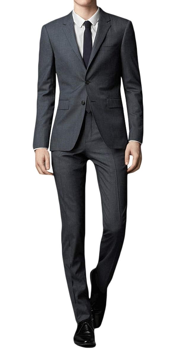 シンプルなデザインのスーツです。ネクタイ、ハンカチーフなど合わせる小物によって、カジュアルからフォーマルまで使いまわしのきくアイテムになると思います。