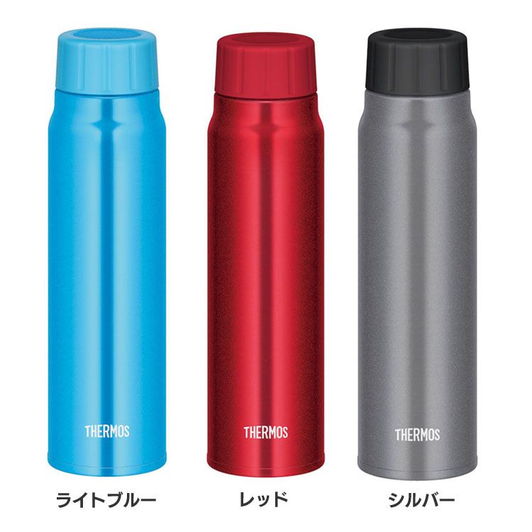 サーモスのおしゃれな保冷ボトルです。持ち歩きやすい500mlサイズ。炭酸対応ですし、カラーが3色そろっています。