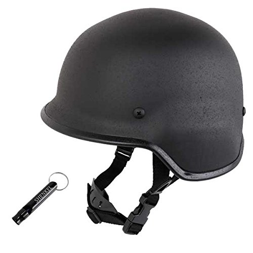 スチール製のヘルメットなので、軽くて丈夫です。黒いデザインが、シックでかっこいいです。