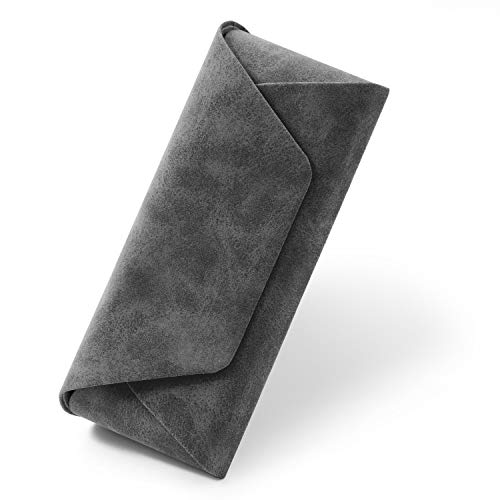 スウェード生地でオシャレな色合いの眼鏡ケース。セミハードケースなのでコンパクトなのに立体構造で大容量で丈夫。