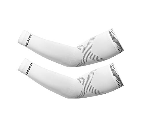 この白いアームカバーカッコよくてオススメです。吸汗速乾でマラソンで汗をかいても快適で、滑り止め付きでいいと思います。