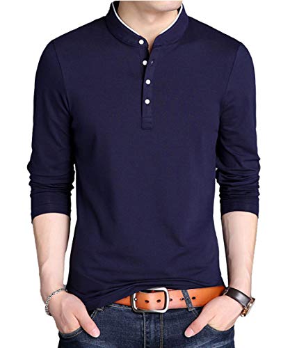 こちらamatsuのヘンリーネックのカットソーはどうでしょう。無地のシンプルな1着なので着回しが効きやすく、トップスとして1枚でも様になるデザインだと思うし、程よい厚さの生地に長袖なので春秋を中心に、重ね着をすれば冬にも使えるのでいいと思います。