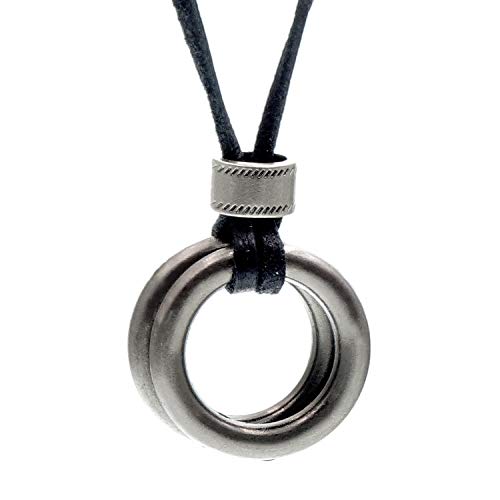 柔らかく肌触りが気にならないし本革レザーのロングネックレスはいかがでしょう?2つのシルバーリングの表情がとっても素敵です。上品なので中年男性がつけていても嫌味がないと思いますよ!眼鏡ホルダーサングラスホルダーとしても使えて便利です。