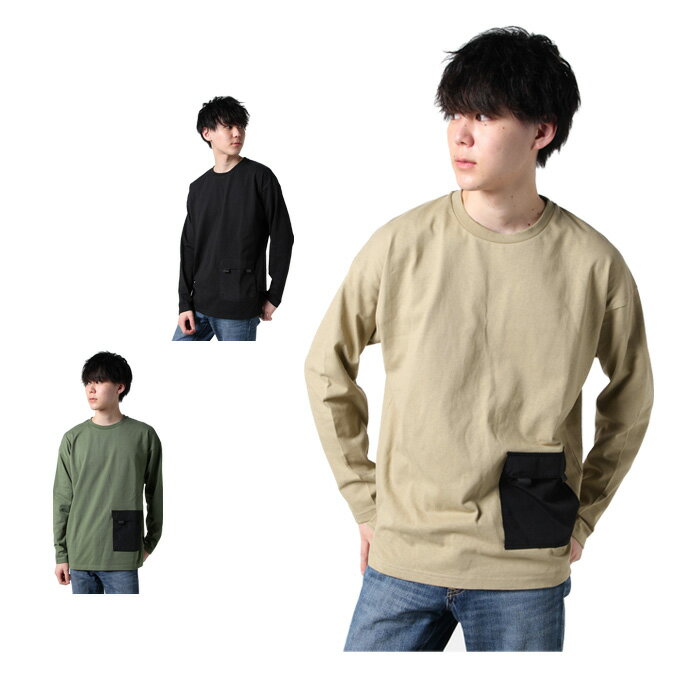 大き目のポケットがアクセントになっている、 長袖の難燃素材のコットン製ロングTシャツです。これなら普段にも着られます