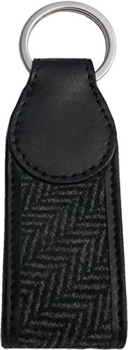 ブラックのレザーとシックなグレーのヘリンボーンファブリックを組み合わせたおしゃれなキーリングはいかがでしょう。レザーは本革で、落ち着いた色合いのヘリンボーンファブリックとの組み合わせがトラディショナルな雰囲気で、こだわりが感じられるアイテムです。